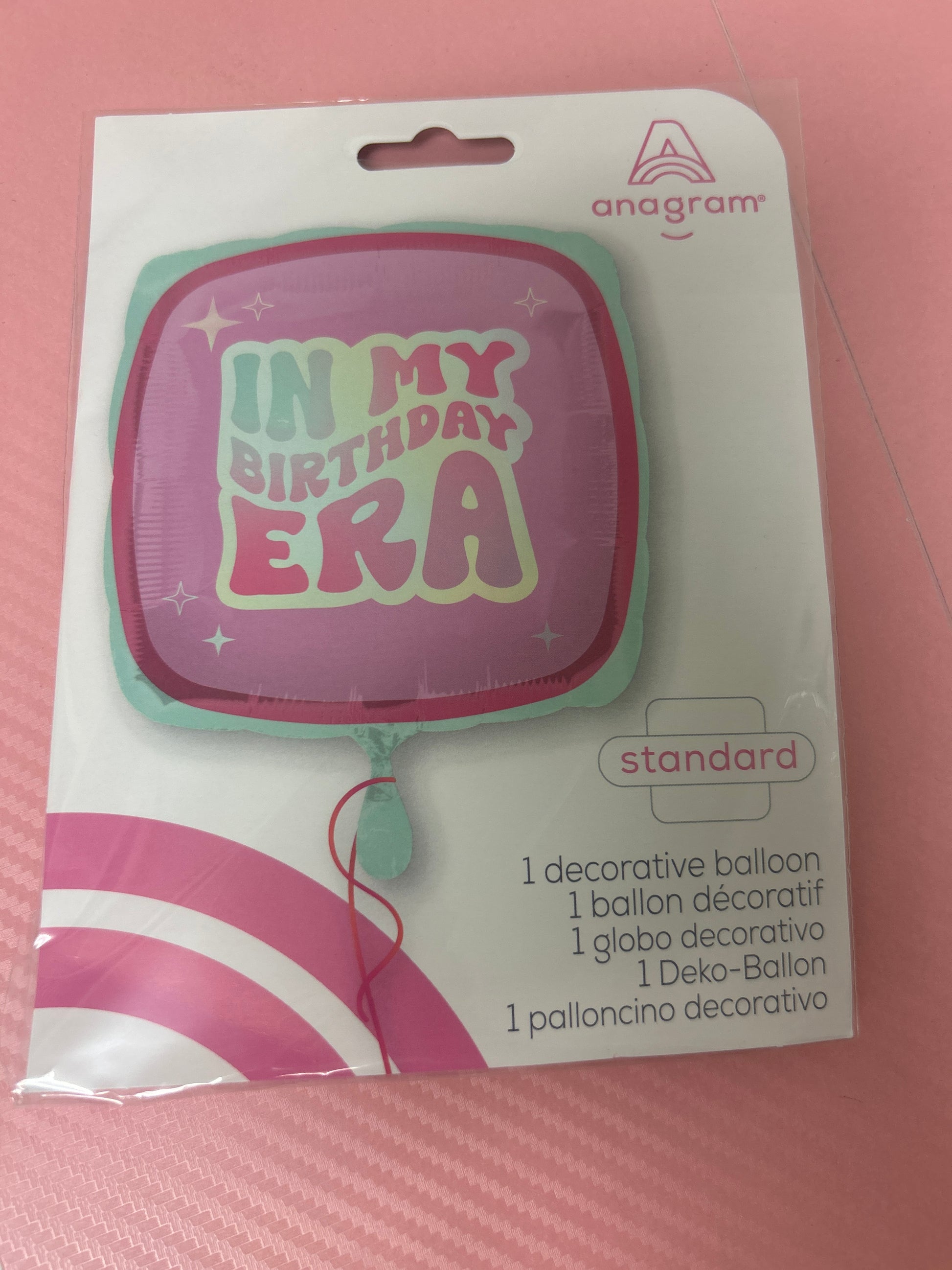 Celebrate in style with this decorative "In My Birthday Era" balloon. Featuring a vibrant design, it's perfect for adding a festive touch to any birthday party. Ideal for themed decor, this balloon enhances the joy and excitement of the occasion.